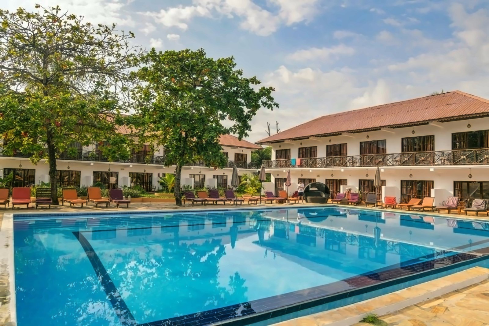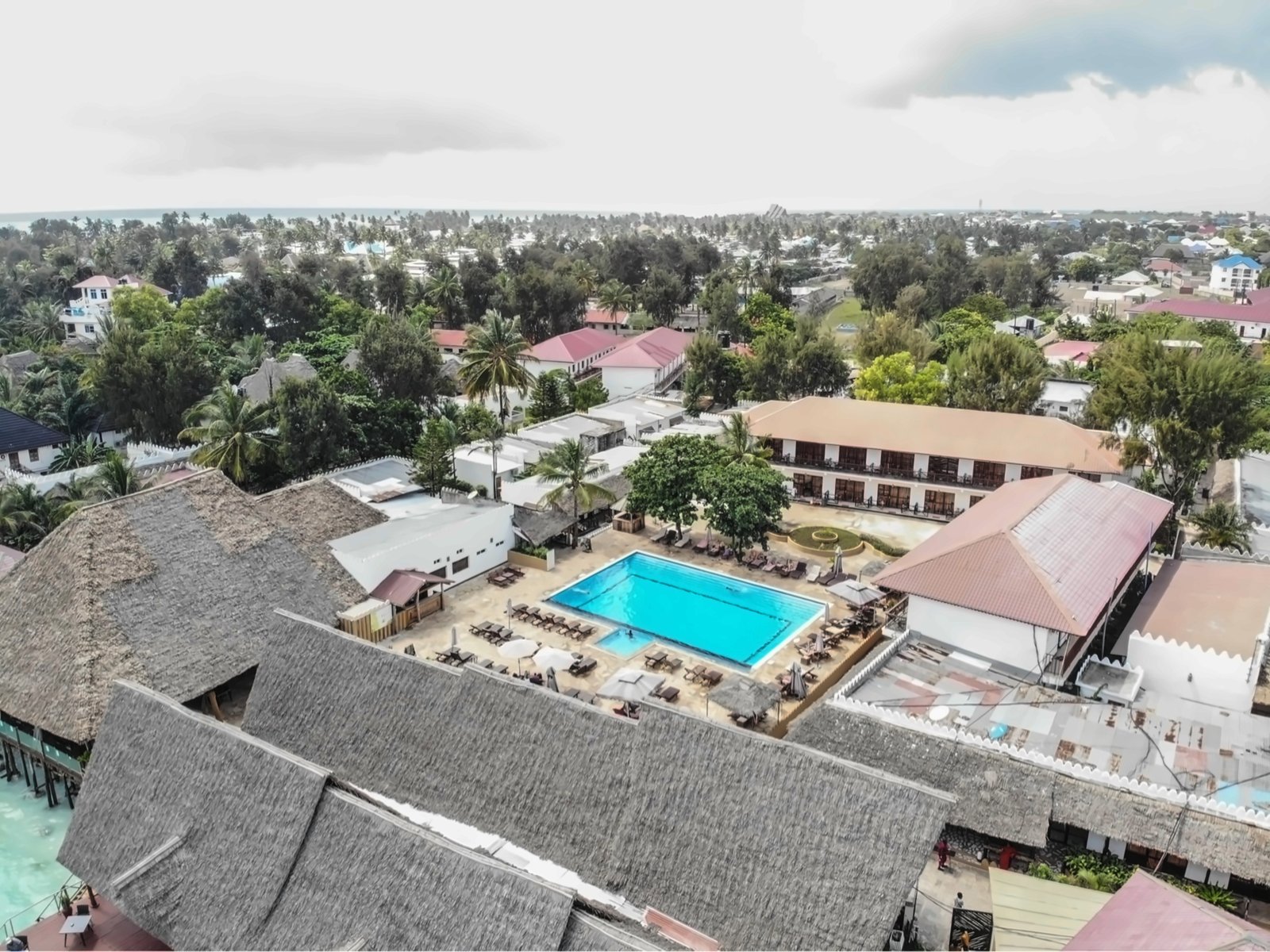 The bungalows are bright, airy, and designed for relaxation. Each room includes air conditioning, free Wi-Fi, and a private bathroom with fresh towels and linens. Moreover, all rooms feature a balcony, and some offer beautiful sea views — perfect for watching Zanzibar’s famous sunsets.
