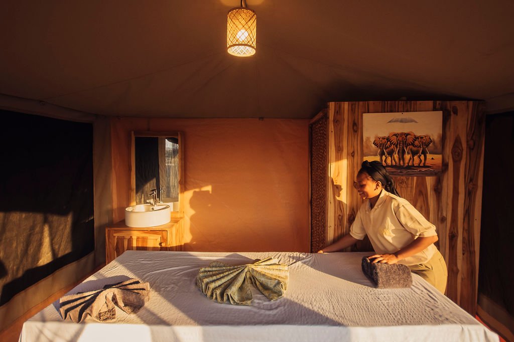 From the moment you arrive, the Serengeti surrounds you with peace and purpose. The camp blends perfectly with nature, built from canvas, wood, and gentle earth tones. Each tent offers a private veranda, soft beds, and an en-suite bathroom. Everything feels simple, elegant, and connected to the land.