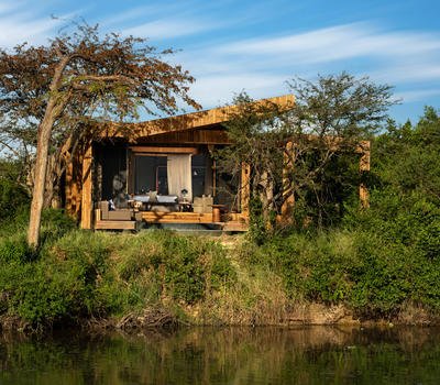 Grumeti Serengeti River Lodge sits along the lush banks of the Grumeti River, one of the most wildlife-rich corridors in the Western Serengeti. This intimate lodge blends luxury with untouched wilderness, offering a serene base for game drives and riverfront wildlife viewing. Its location places guests directly in the path of the Great Migration as herds move through the Western Corridor from May to July.