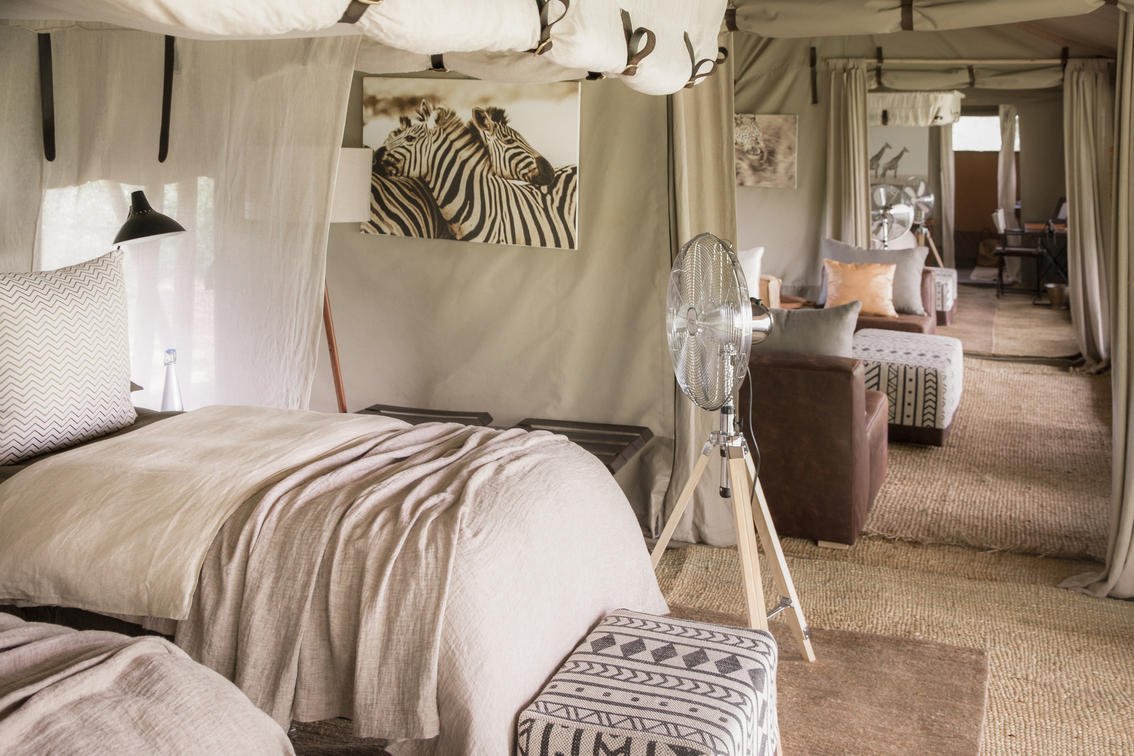 Each suite features refined interiors, spacious ensuite bathrooms, outdoor showers, and private verandas where guests can enjoy sunrise views and evening wildlife sounds. The camp’s attentive team provides personalized service, while expert guides lead tailor-made game drives through areas known for big cats, large herds, and seasonal Great Migration movements.