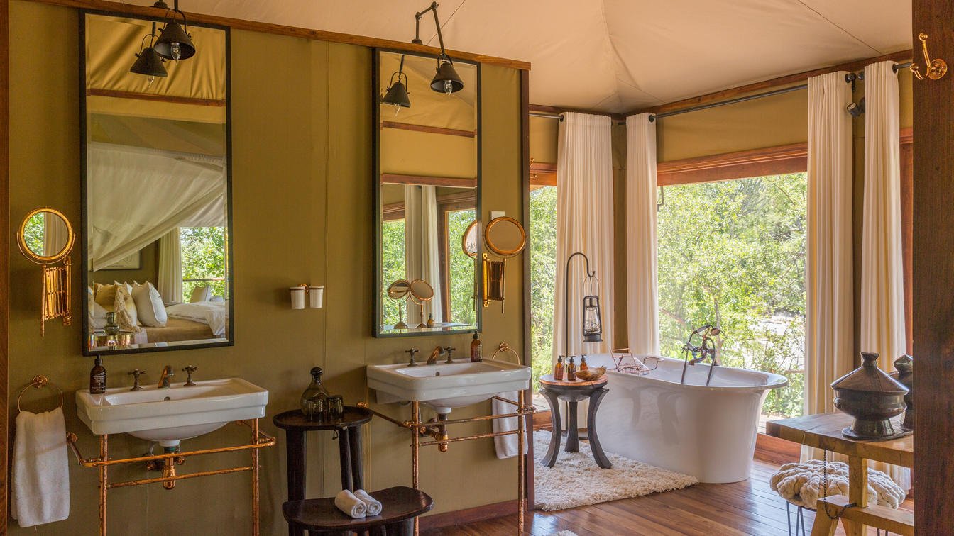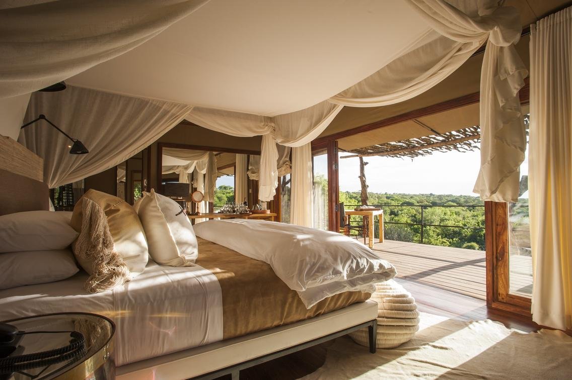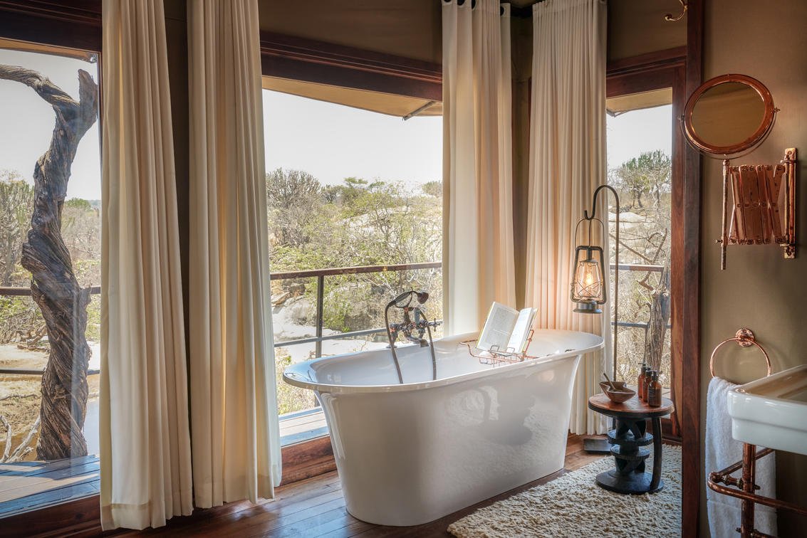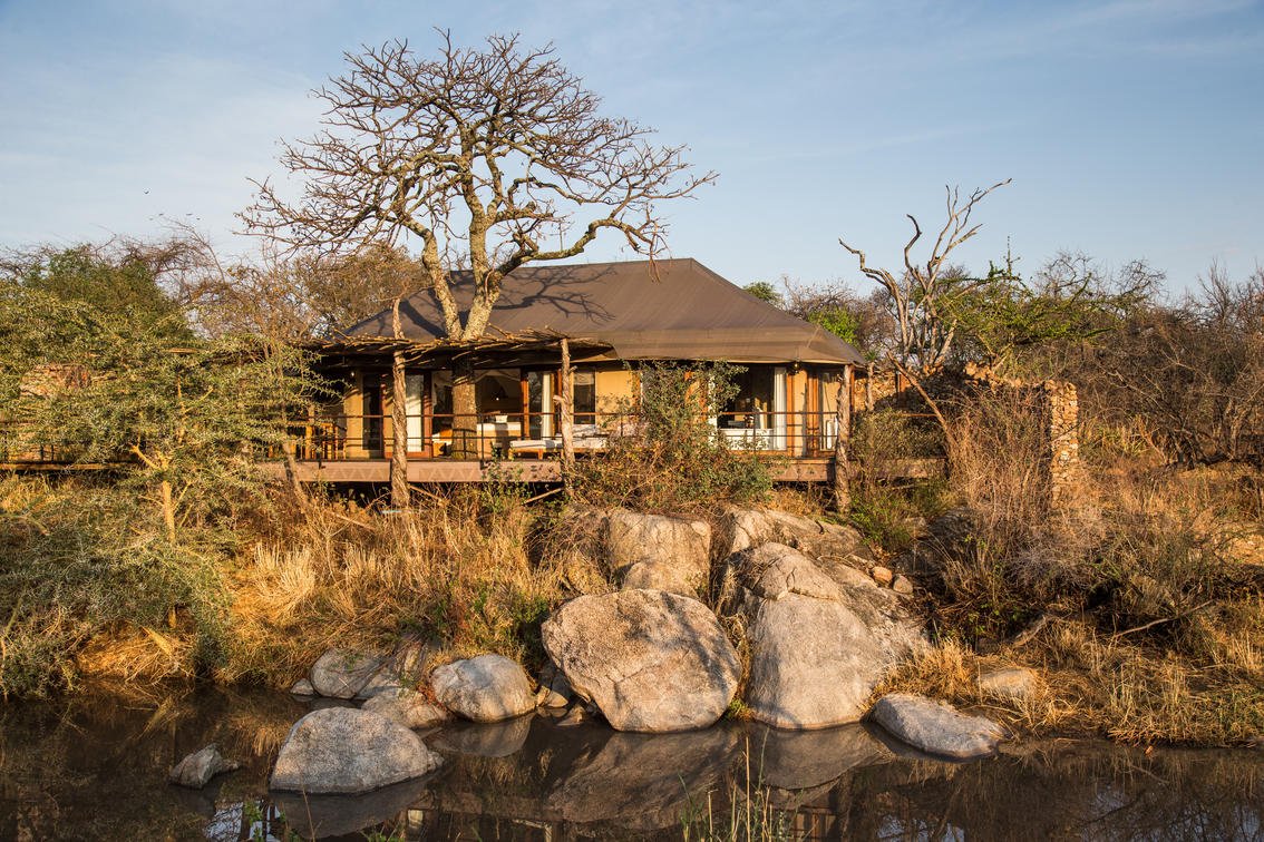 The suites are spacious and elegantly designed, featuring deep soaking tubs, outdoor showers, and private decks overlooking rocky outcrops and ancient acacia woodlands. Every detail—from bespoke interiors to personalized service—creates a refined and intimate atmosphere. Guests enjoy flexible, unhurried safaris guided by expert trackers who know the reserve intimately. The area offers rich year-round wildlife and lies close to the movement of the Great Migration between December and March.