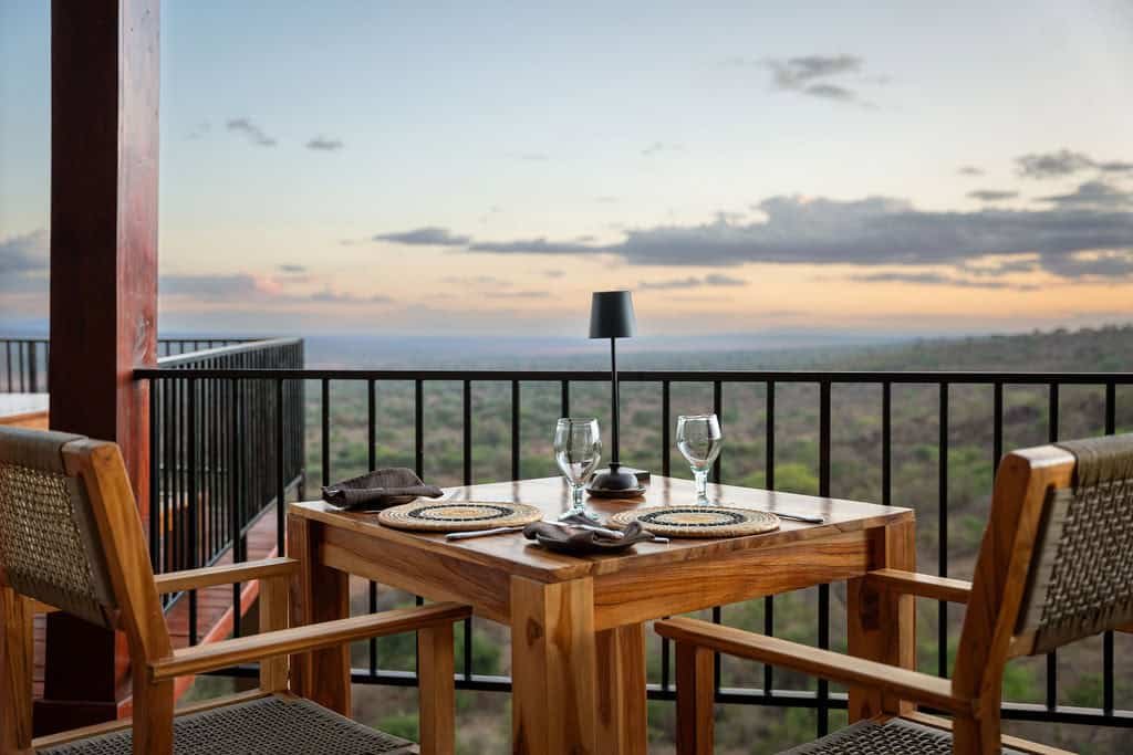 Moreover, each spacious room provides comfort after a full day in the park. You relax on a proper bed with quality linens and enjoy a private en-suite bathroom with hot water. At the same time, your private veranda opens to the wilderness, where wildlife and birds often pass nearby. In the evening, warm lighting and thoughtful service create a relaxed mood. Meanwhile, the main lounge and dining area offer a social yet quiet space to unwind, enjoy well-prepared meals, and watch the sunset over the plains.