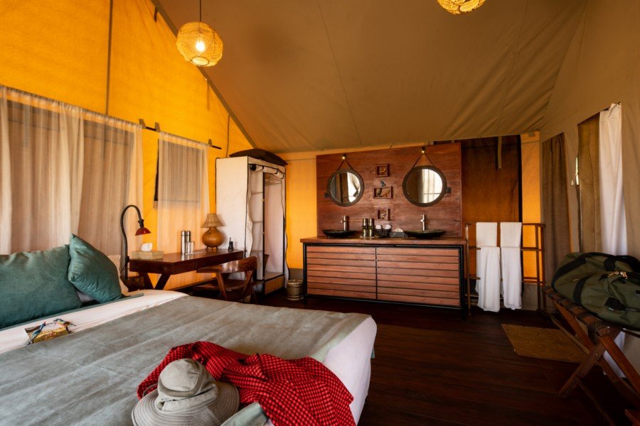 Moreover, the camp’s main lounge and dining area create a warm, communal atmosphere. Guests can savor freshly prepared meals made from local ingredients, share safari stories by the campfire, or simply unwind as the sun sets over the vast plains.